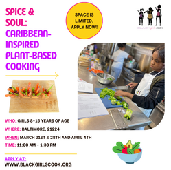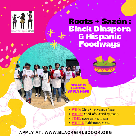 Join us for a three-Saturday culinary adventure exploring the vibrant connection between Black Diaspora and Hispanic food traditions. This hands-on cohort introduces students to scratch-made cooking techniques, flavor-building skills, and ancestral methods while highlighting how ingredients, spices, and techniques travel across cultures. Girls will practice marinating, sautéing, roasting, and assembling flavorful dishes while learning about the history, resilience, and creativity behind African, Caribbean, Afro-Latino, Mexican, and Southern cuisines.